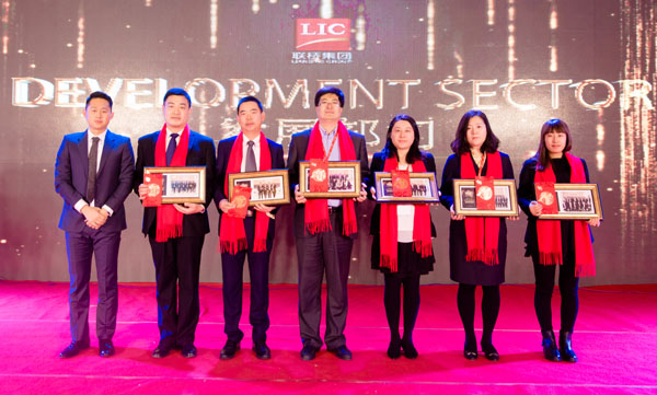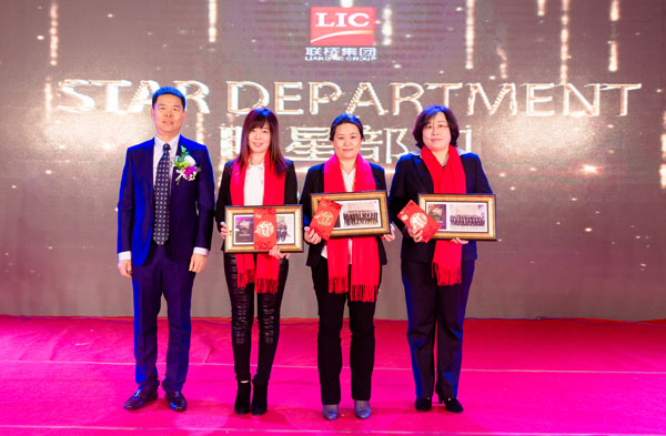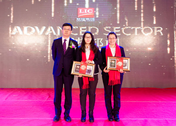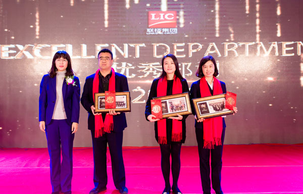 年會第一項,由集團公司董事慕衛波宣讀表彰先進決定,莊嚴隆重的頒獎典禮正式開場。雄壯渾厚的音樂回蕩在會場大廳,震撼人心;鏗鏘有力、滿含深情的頒獎詞,高度凝練呈現了2016年度“卓越貢獻獎”、“明星部門”、“先進部門”、“優秀部門”、“發展部門”等獲獎部門的閃光點;閃耀著金屬色光芒的頒獎畫面,引起強烈的視覺沖擊,將榮耀盡顯其中。先進個人身披紅圍巾,精神抖擻,喜氣洋洋地依次上臺領獎,集團領導班子集體頒獎。骨干部門與優秀員工,支撐了公司各個事業版塊的發展,代表著聯橋人的艱辛和擔當,折射出聯橋人的責任和力量。
