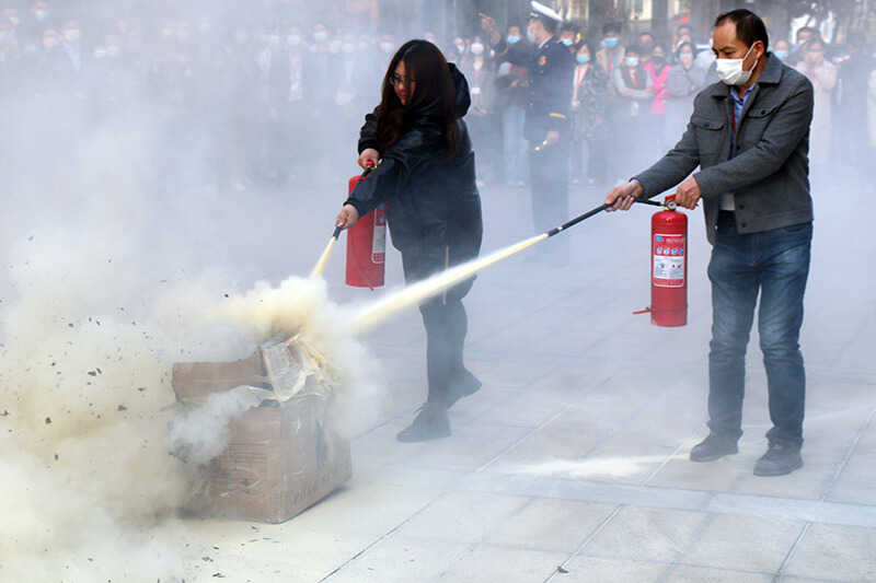 鄭巍參謀特別對滅火器的使用方法、種類、撲救對象和注意事項作了詳細的說明,對室內消火栓、室外消火栓使用和維護以及應急指示標志進行現場講解和體驗,并對參訓人員提出的問題進行了一一解答。隨后,參加培訓的員工代表紛紛上前現場學習,親身體驗使用滅火器滅火。