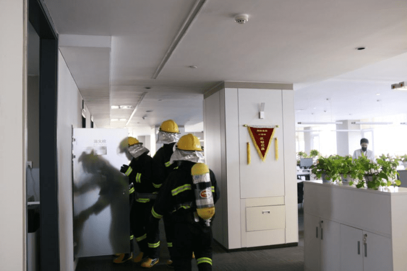 當天15時,聯橋集團安全部長、消防疏散演練總指揮宋杰一聲令下,演練正式拉開帷幕。首先,18樓會議室發現“火險”并發出火警報警信號,樓層負責人第一時間上報“火情”,按照應急預案采取措施;隨后,各演練工作組接到通知后都迅速反應到位,以本樓層員工消防志愿者為第一梯隊,取用本樓層現有滅火器展開滅火救援,集團滅火救援組也馬上到位支援,利用滅火器和室內消防栓對“火場”滅控最終成功控制撲滅“火情”。