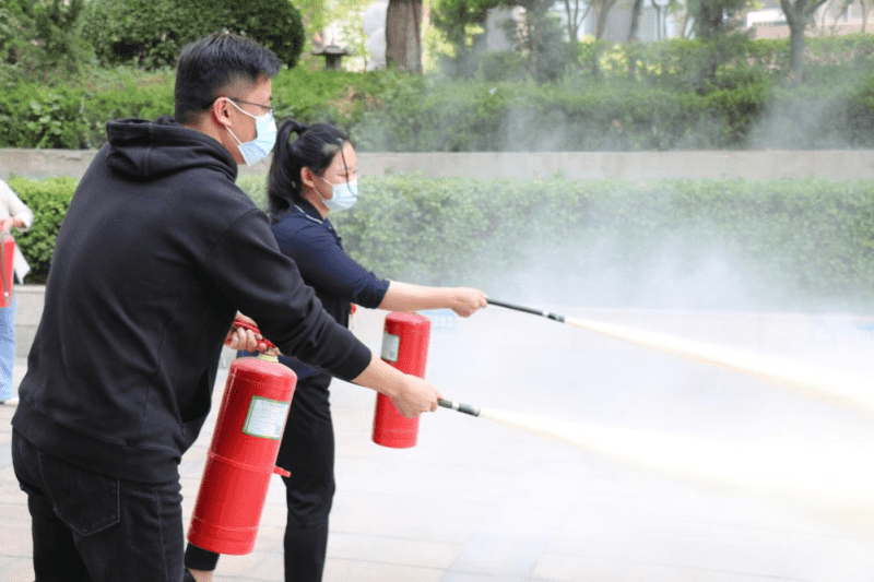 理論培訓結束后,接下來便組織參演員工現場操作滅火器進行滅火實戰演練,并對每人的操作手法、過程及結果進行現場點評指正。由聯橋集團副總經理于福杰率先操作示范,參加演練的87名員工全部參與到了實戰演練當中。