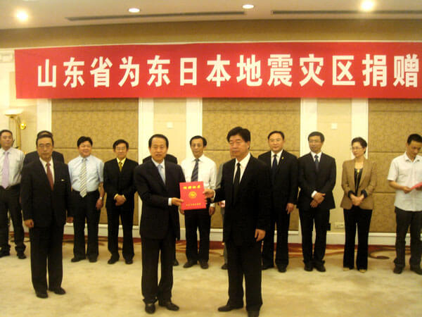 2011年5月18日,山東省為東日本地震災區捐贈儀式在山東大廈舉行,原山東省副省長、省慈善總會會長謝玉堂,省民政廳、省政府新聞辦公室、省對外友好協會等相關領導以及3家企業代表共同出席捐贈儀式。慕镕鍵董事長代表聯橋集團向日本日中經濟交流協會尾河和浩會長捐款,再一次向日本人民傳遞了聯橋人的愛心和情意。