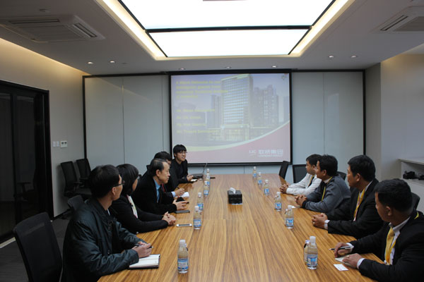 2015年12月15日,柬埔寨國家工業技術學院院長Mr. Moan Sam Oeurn一行四人訪問聯橋集團。集團公司董事長慕镕鍵會見了來訪客人,集團公司副總經理于福杰、黨委副書記宋威麗、柬埔寨公司總經理張子猛等領導陪同會見。慕镕鍵董事長與Mr. Moan Sam Oeurn院長代表雙方簽署了戰略合作協議。